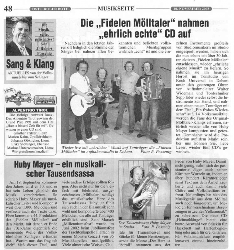 Veröffentlicht inDie „Fidelen Mölltaler“ nahmen „ehrliche echte“ CD auf